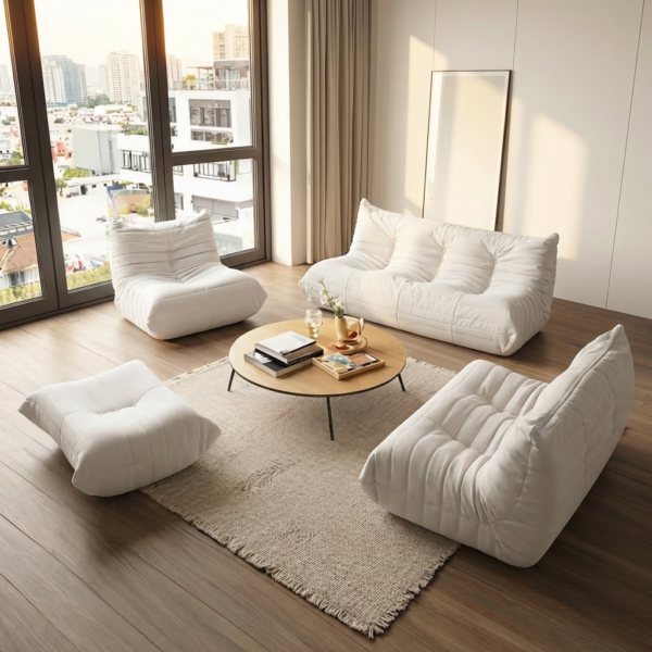 Modern Luxury Togo Sofa Set White Velvet Caterpillar Lazy Floor Sofa Relaxing Fireside Lounge Chair for Living Room Furniture