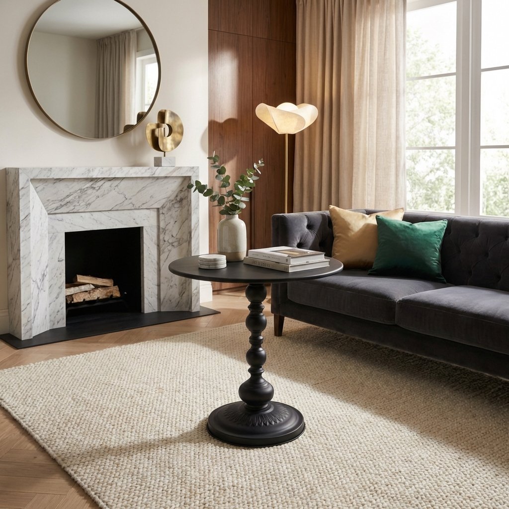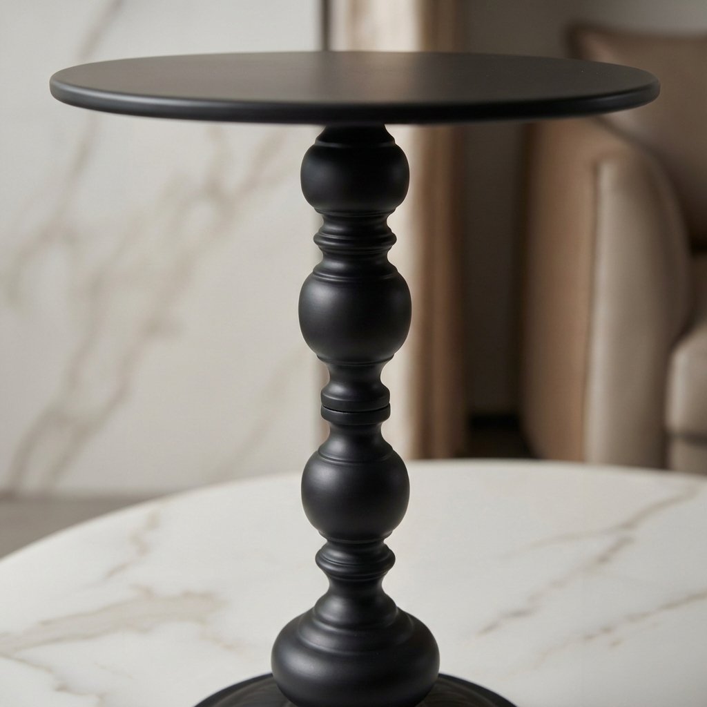 Elegant Black Round Coffee Table with Carved Pedestal Base, Modern Living Room Furniture
