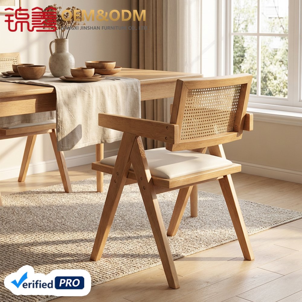 High Quality Adjustable Height Wooden Chair Rattan Backrest with Seat Cushion Indoor Outdoor Massage Home Furniture Living Room