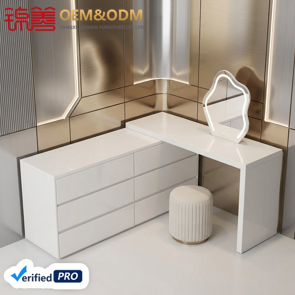 Hot Selling Bedroom Simple Modern Desk Dresser with Stool Cloud Mirror Rotating Dresser Integrated