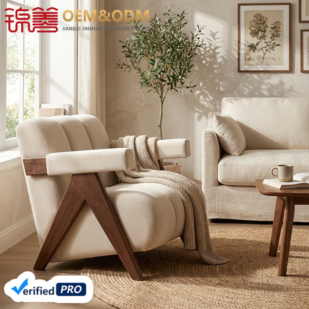 Hot Selling Foldable Convertible Solid Wood Single Leisure Sofa Chair with Backrest for Bedroom Home Office Living Room & Hotel