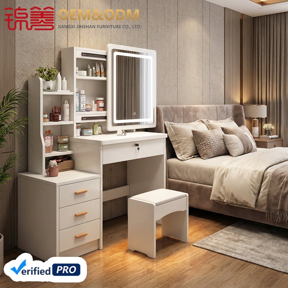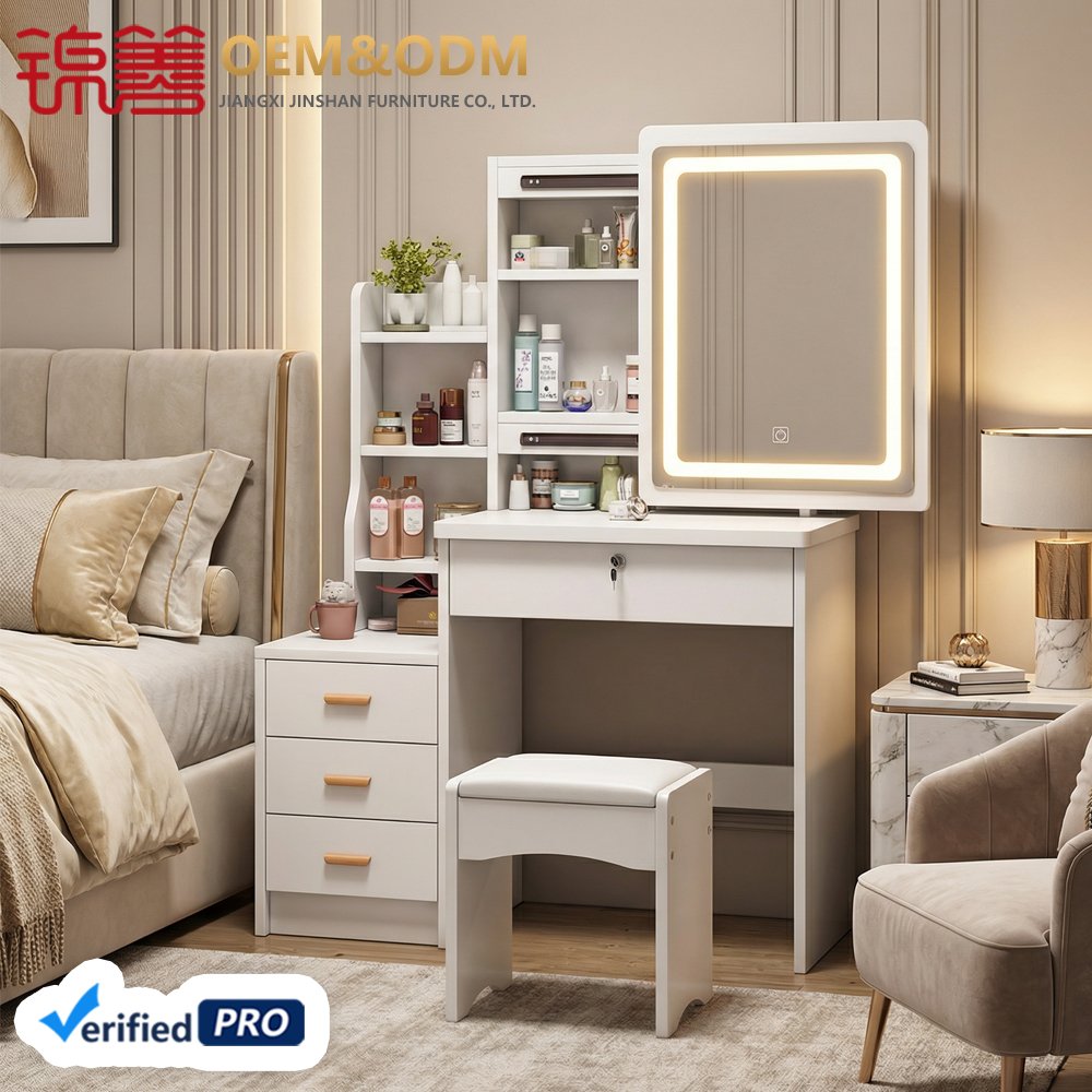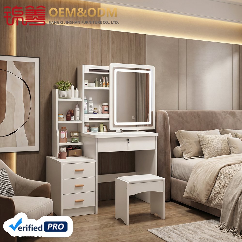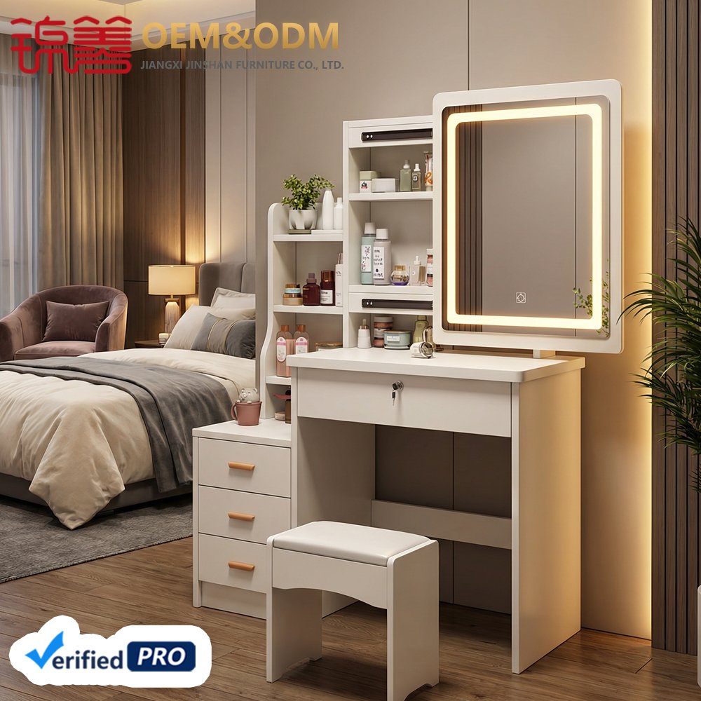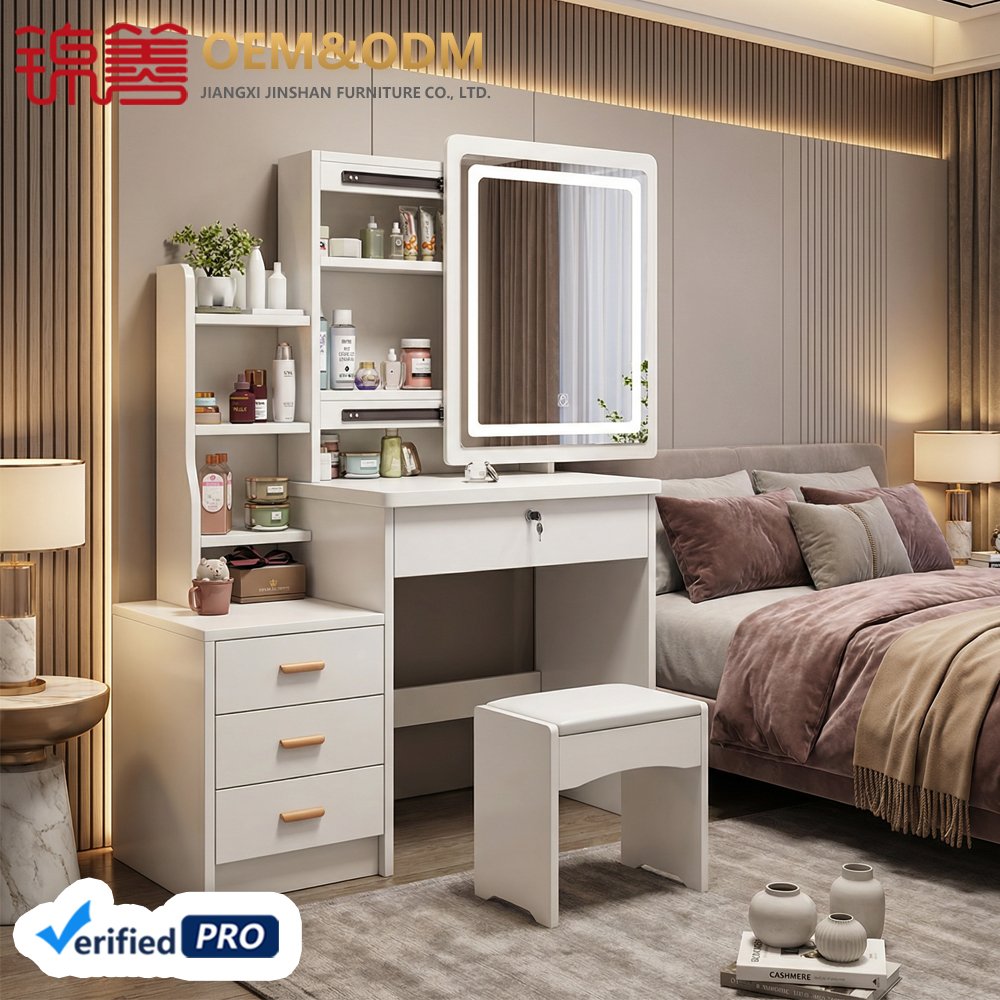 JINSHAN Luxury Modern Vanity Table with LED Lights Wood Panel Dresser with Storage for Home Bedroom Drop Shipping